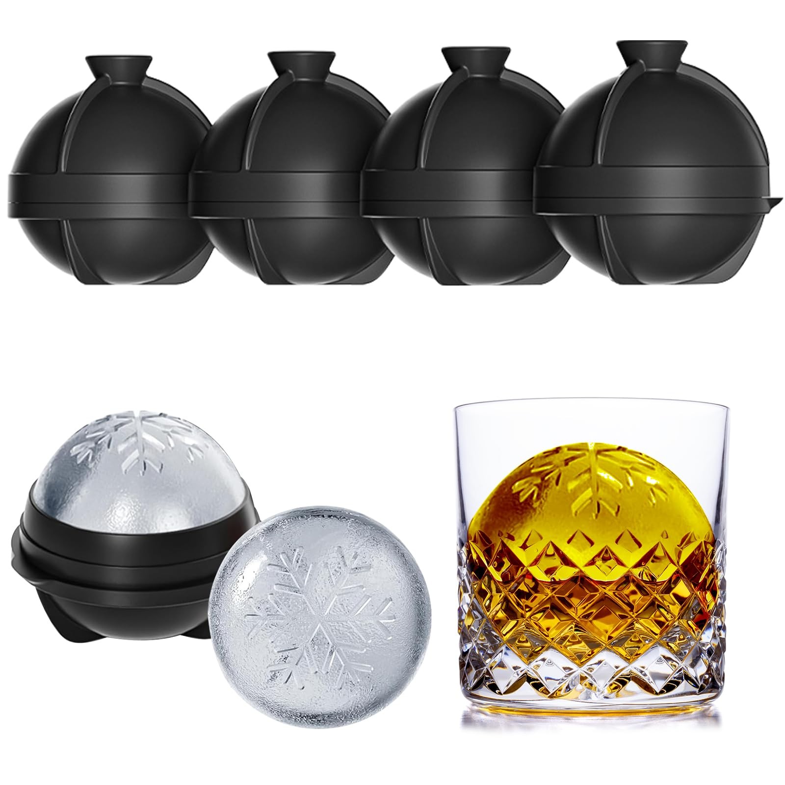 Grand Moule à Glaçons Rond en Forme de Flocon de Neige - 4 Moules à Glaçons e...