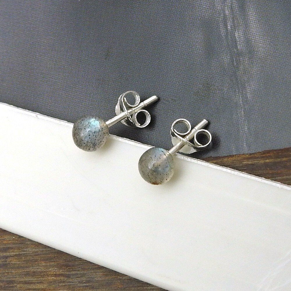 Prezent bożonarodzeniowy Naturalny labradoryt Kamień szlachetny Kolczyki sztyfty 925 Srebro szterlingowe–