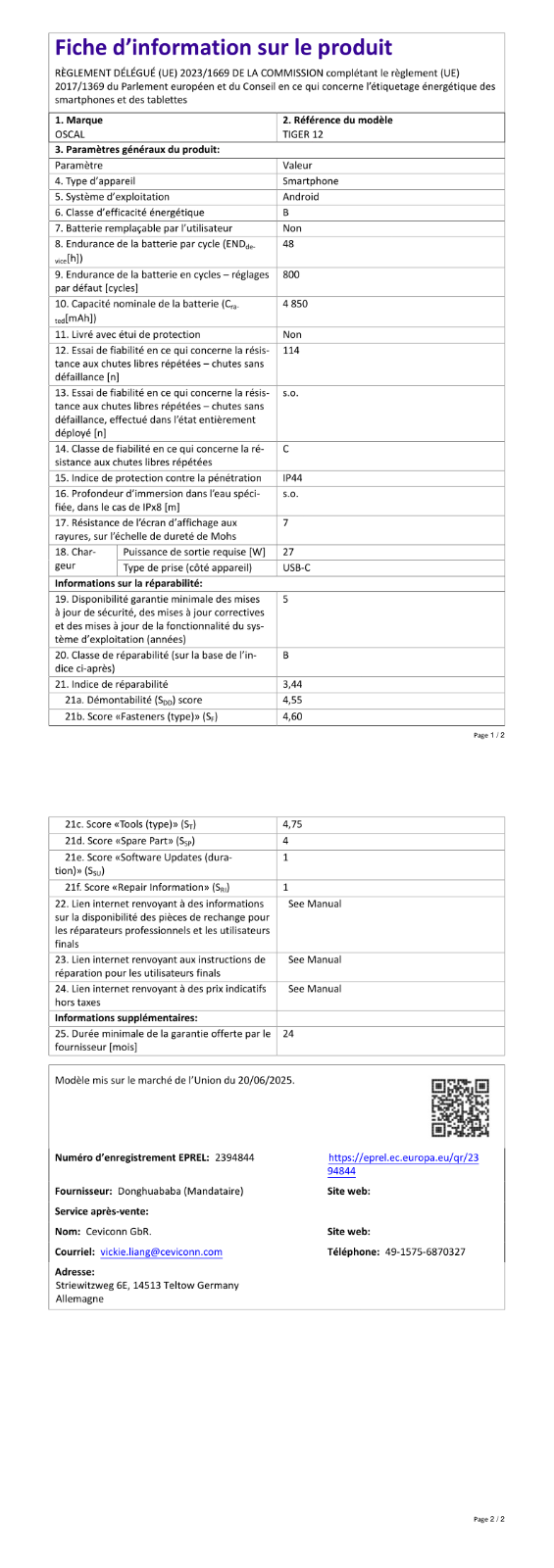 Blackview OSCAL Téléphone Portable TIGER 12 24Go+256Go 120Hz 5000mAh Smartphone
