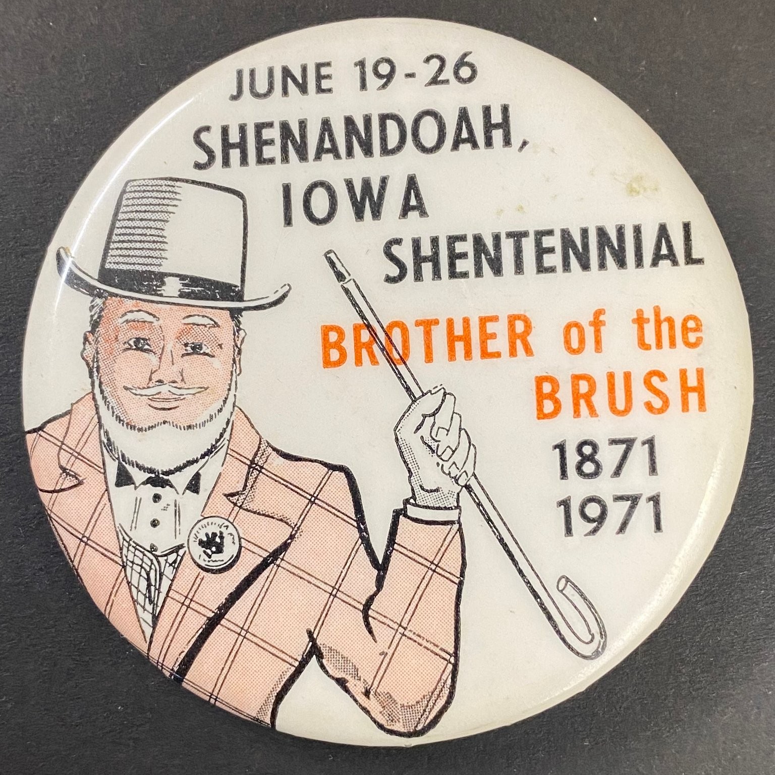 Shenandoah Iowa Shentennial Brother of the Brush Pinback Button 1871-1971–