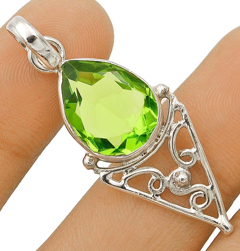 2CT Naturalny perydot 925 Solidny Prawdziwy Srebro Sterling Wisiorek Biżuteria @B21-9–