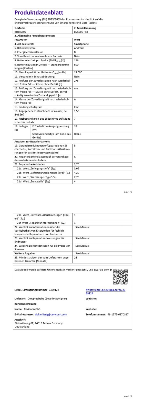 Blackview BV6200 Pro 4G Outdoor Smartphone 12GB + 128GB 13000mAh Android 13 6,56"–
