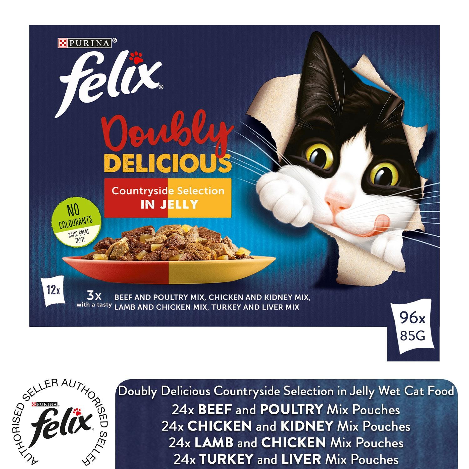 Felix Doubly Pyszny wybór na wsi w galaretce Mokra karma dla kotów dla dorosłych, 96x85g–
