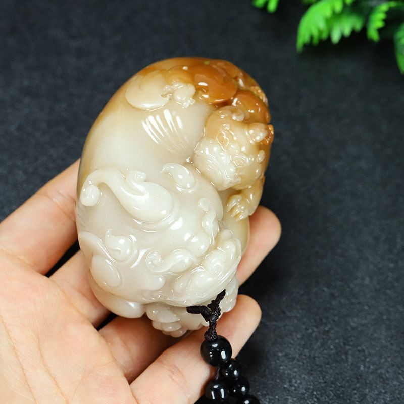 Żółty Jadeit Pixiu Ręczna figurka Bogactwo Bestia Rzeźba Feng Shui Amulet Dekoracja–