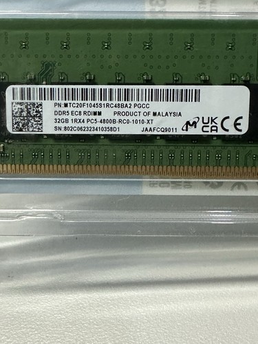 - Sprzedane 9 paź 2025Micron 32gb DDR5-4800 RDIMM MTC20F104581RC48BA2 Serwer RAMFabrycznie nowy | Sprzedawca: prywatny512,20 złKup teraz+68,89 zł za wysyłkęz: Stany Zjednoczonebrayanmazariego2013 100% pozytywnych (480)