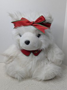 Vintage Pluszowy biały miś Miss Santa Dayton Hudson 1987 Boże Narodzenie Opaska na głowę