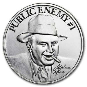 2 uncje Srebrny Wysoki Relief Okrągły - "Wróg publiczny #1" Alfons Capone
