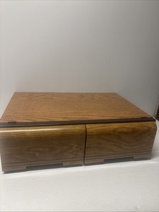 Vintage VHS Tape Faux Wood Two Drawer Storage Cabinet Case Organizer 18 VHS