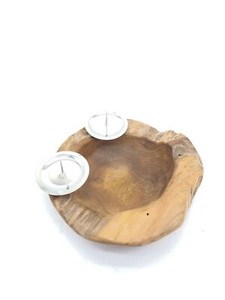Ambientehome wieniec adwentowy miska z drewna tekowego Ø 20-25 cm, ręcznie robiony, brązowy