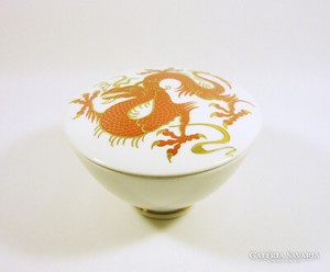 HEREND, CHIŃSKIE (FODOS) PUDEŁKO NA PAPIEROSY ZE SMOKIEM, RĘCZNIE MALOWANE PORCELAN (B102)