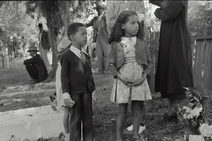 Czarno-białe zdjęcie Dzieci górników stojące na werandzie 8x10 Przedruk A-21