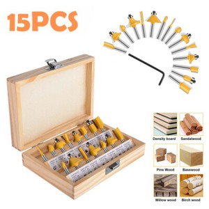 6.35MM Shank Top Bearing Flush Trim Carbide Router Bit Set Milling 15Pcs Cutter