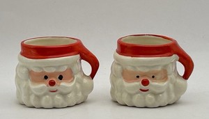 VTG Partia 2 małych ceramicznych kubków Świętego Mikołaja twarz Boże Narodzenie Kubki lata 1950-te 1,75 cala H