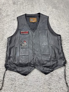 First Classic Skórzana kamizelka Męska 3XL Czarna Motocykl Biker Grudge Pełny zamek błyskawiczny Koronka