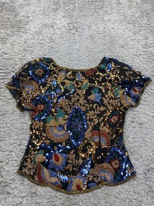 Czarny krawat He-Ro Top Damski Średni Czarny Jedwab Kwiatowy Cekiny Koraliki Artsy Bluzka