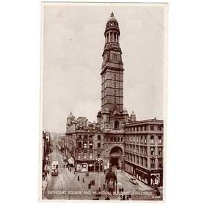 GREENOCK Renfrewshire Cathcart Square & Municipal Buildings pocztówka fotograficzna, nieużywana 9,76 zł