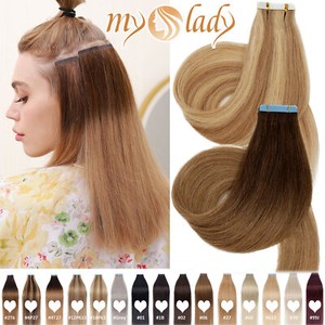 MYLADY Thick Tape In Remy Human Hair Extensions Full Head Skin Weft Highlight US
