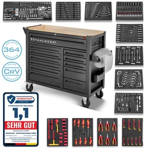 STAHLWERK Wózek warsztatowy DINO Wózek narzędziowy XXL Wózek montażowy 364 Narzędzia CrV